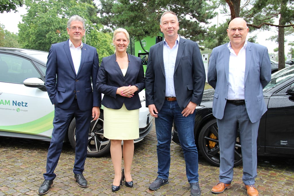 V.l.n.r.: Raymon Deblitz (Managing Director T&B Consulting), Dr. Diana Warnecke (Projektleiterin und Strategieberaterin), Sven Nuhn (Geschäftsführer EAM Natur Energie) und Georg Schmitt (Geschäftsführer Grid & Co. GmbH)